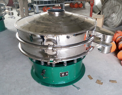 產品簡介:本品為800mm直徑三層四出口標準旋振篩,上半部為碳鋼材質,底座也為碳鋼材質。