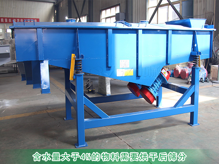 直線振動篩在篩分含水量高或者粘性高的物料時,需要減少物料的含水量后才能篩分使用,因為含水量高的物料更具有粘稠型,在篩分過程中容易吸附在篩網上,造成篩網堵塞,對于含水量大于4%的物料需要烘干后篩分,含水量大于20%時需要采用濕式篩分。