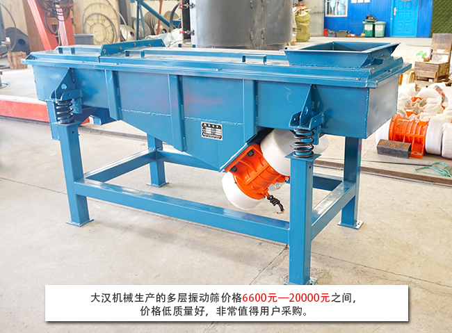 隨著生產(chǎn)節(jié)奏的加快,單層直線振動(dòng)篩已經(jīng)完全無法滿足生產(chǎn)需求,多層直線振動(dòng)篩就是由直線振動(dòng)篩改造升級的一款高效篩分設(shè)備。多層直線振動(dòng)篩可以將物料分級為多種規(guī)格,實(shí)現(xiàn)一次投料出多種規(guī)格物料,可以有效節(jié)省時(shí)間成本。由于不同廠家生產(chǎn)的多層直線振動(dòng)篩型號、生產(chǎn)工藝等不同,所以就導(dǎo)致市場上多層直線振動(dòng)篩價(jià)格不一,那么一臺(tái)多層直線振動(dòng)篩一般都多少錢呢?大漢小編將為您解答: