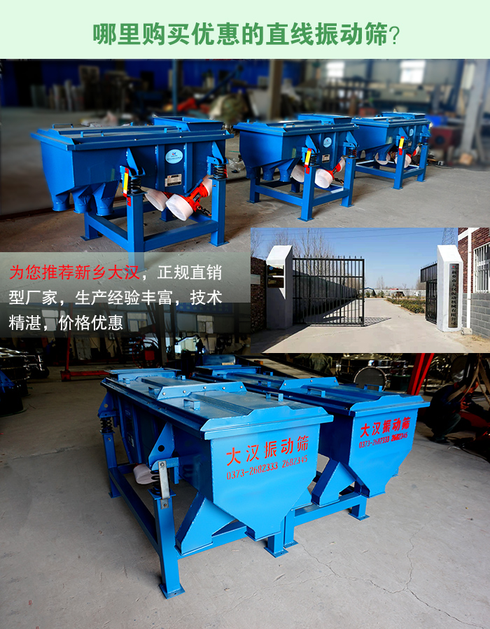 現(xiàn)提前預約,即可享受新折扣價,您也可來廠對直線振動篩進行免費的參觀與試機,了解實際生產(chǎn)現(xiàn)場的運行情況,大漢公司隨時期待著您的到來。
