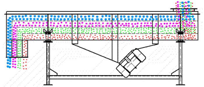 直線型振動篩兩電機軸相對篩面有一傾角,在激振力和物料自重力的合力作用下,物料在篩面上被拋起跳躍式向前作直線運動,從而 達到對物料進行篩選和分級的目的??捎糜诹魉€中實現自動化作業。